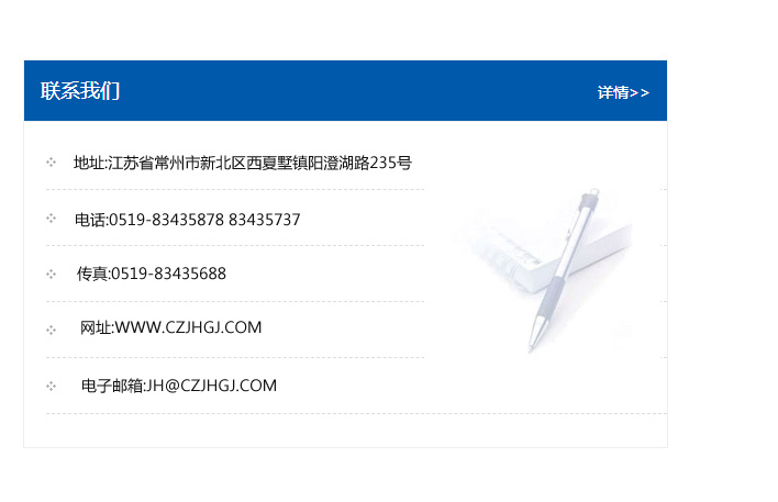 傳真:0519-83435688    郵編:213135    網址:WWW.czjhgj_com.hebeiwangshi.com    電子郵箱:JH@czjhgj_com.hebeiwangshi.com